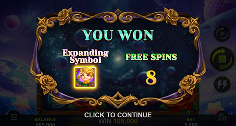 During the free game, specified expanding symbols will fill the entire reel when forming a payline.
